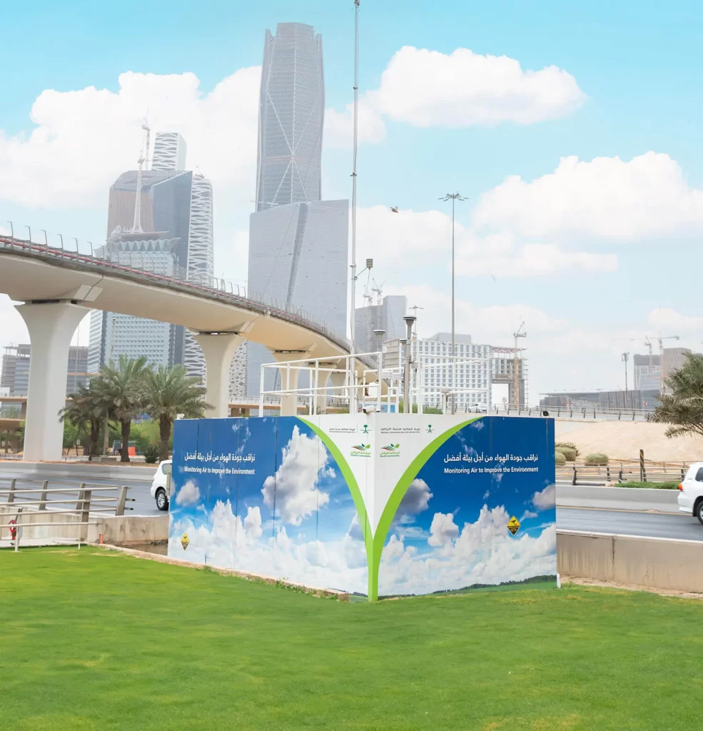 وتضمن برنامج إدارة جودة الهواء إنشاء 17 محطة موزعة على مواقع متفرقة في المدينة، تغطي المناطق الحضرية وخارجها، وذلك بهدف رصد 10 أنواع من ملوثات الهواء، وهي؛ ثاني أكسيد الكبريت، وثاني أكسيد النيتروجين، وأول أكسيد الكربون، وكبريتيد الهيدروجين، والأوزون، والميثان، والرصاص، والمركبات العضوية المتطايرة، والجسيمات العالقة بنوعيها “2.5 PM” و”PM 10“، بالإضافة إلى رصد المعلومات المناخية مثل؛ سرعة واتجاه الرياح، ودرجة الحرارة، وكميات الأمطار، وغيرها.
