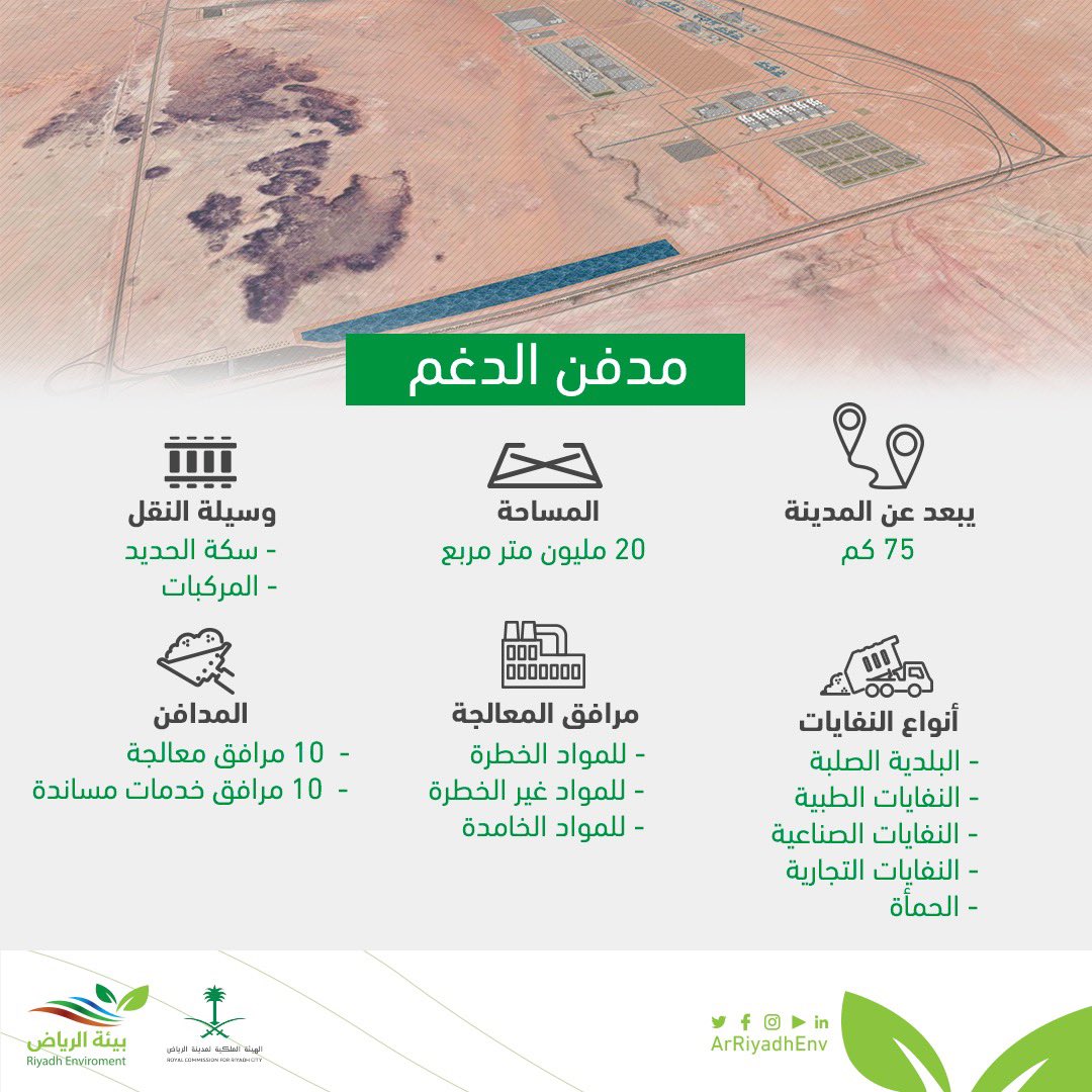 قامت الهيئة الملكية لمدينة الرياض بإعداد المخطط الشامل للمَرفق المتكامل للمعالجة والتخلص النهائي من النفايات البلدية الصَلبة والطبية والصناعية والتجارية والحمأة في منطقة الدُغم خارج مدينة الرياض بما يحقق المعايير البيئية المُستدامة والحفاظ على البيئة والصحة العامة لسكّان المدينة، حيث يبعد الموقع الجديد 75 كلم عن المدينة وتبلغ مساحته الإجمالية حوالي 20 مليون متر مربع، وقد صُمّم خصيصًا لاستقبال ومعالجة جميع أنواع النفايات المنتجة بمدينة الرياض ومُواكبة الاحتياجات المتزايدة للعاصمة حتى عام 2045 ميلاديًا، بحيث يكون قابل للتوسع مستقبلاً.